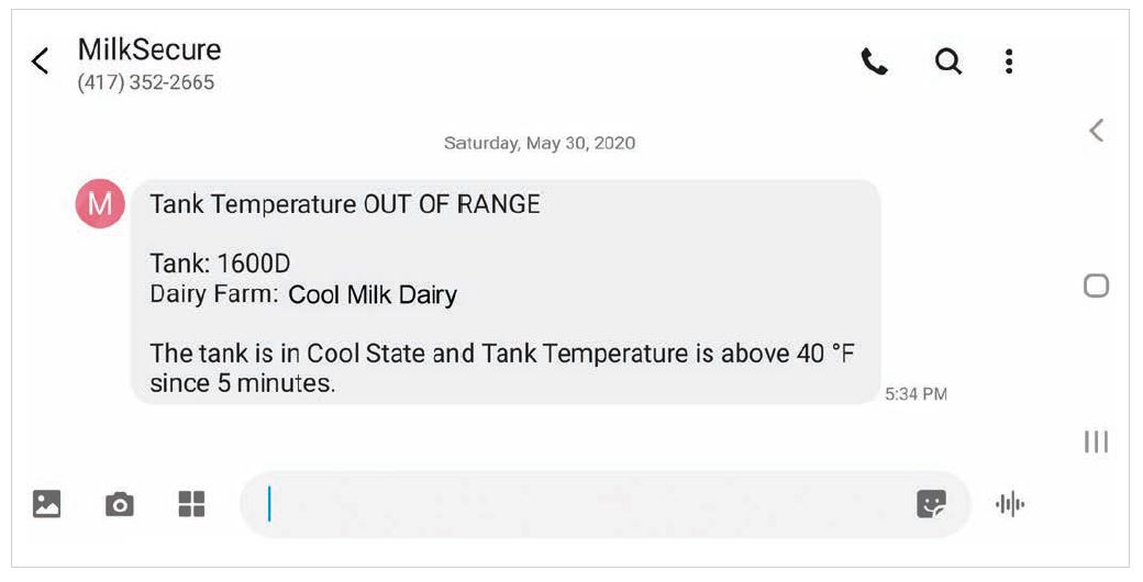 • Real-time tank temperature and volume data via the MilkSecure™ dashboard.