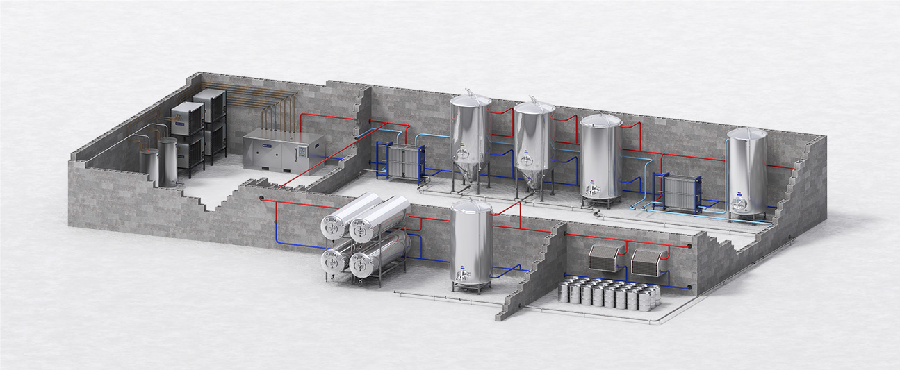 Paul Mueller Company's LS chillers supply essential cooled glycol water throughout your facility to enhance each commercial brewery chilling process, including wort cooling, fermentation, aging, and serving tank cooling. Ideal for instant cooling and supplemental cooling in 15 to 20 BBL breweries, these chillers are designed to grow with your operation. They utilize high-quality Scroll condensing units, which save energy and reduce electrical costs. Install additional condensing units as refrigeration capacity demands increase in your thriving brewery.
